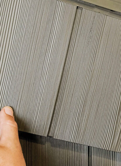 Closeup of a Harbor Mill shake profile in the dark gray color Myst Gray